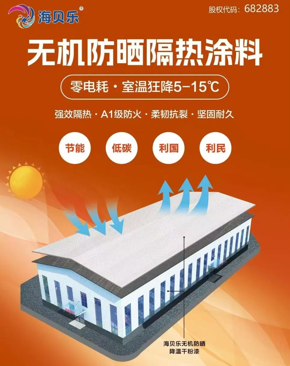 海貝樂(lè)無(wú)機(jī)防曬降溫干粉漆,顛覆目前常用的制漆技術(shù),以質(zhì)輕隔熱耐火的無(wú)機(jī)膠凝礦粉為主材,利用“輻射+反射冷卻”的工作原理,可實(shí)現(xiàn)0電耗室內(nèi)狂降5-15攝氏度,材料表面立降15-30℃,涂層厚度最低可達(dá)0.2mm!作為純無(wú)機(jī)涂料,本品不含甲醛、VOC,具有A1級(jí)防火性能,在生產(chǎn)、施工中均無(wú)毒無(wú)害無(wú)污染;同時(shí),性質(zhì)穩(wěn)定,耐受性強(qiáng),剛?cè)岵?jì),涂層可彎折180 度不開(kāi)裂,耐洗刷2000次涂膜無(wú)損,持久耐用,不怕日曬老化,抗裂防水效果俱佳!