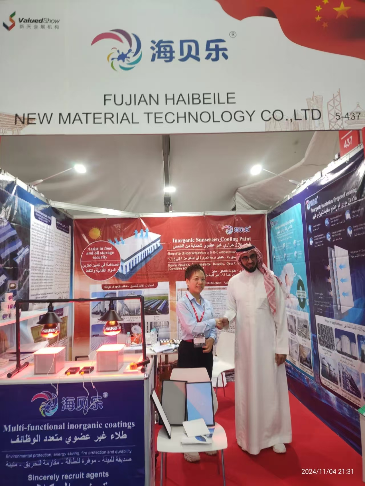 在展會(huì)中,我司工作人員以原理說(shuō)明+實(shí)驗(yàn)測(cè)溫+用戶感受的方式,向參展群眾生動(dòng)展現(xiàn)了無(wú)機(jī)防曬降溫干粉漆在推進(jìn)節(jié)能建筑和改善居住環(huán)境中的巨大功效,獲得了參展企業(yè)和圍觀群眾的一致好評(píng)。多家企業(yè)對(duì)該產(chǎn)品表示出強(qiáng)烈興趣,并對(duì)其在防曬降溫涂料市場(chǎng)的巨大商業(yè)潛力給予了高度評(píng)價(jià);通過(guò)多輪深入交洽,我司與當(dāng)?shù)囟嗉移髽I(yè)成功達(dá)成初步合作戰(zhàn)略。這標(biāo)志著無(wú)機(jī)防曬降溫干粉漆在沙特地區(qū)邁出了商業(yè)化進(jìn)程的第一步。